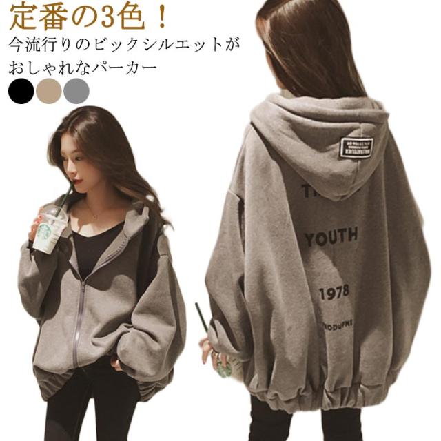 ドルマン袖 裏起毛 秋冬 アウター ジップ 長袖 羽織り トップス スウェット フード付き パーカー パーカー おしゃれ ゆったり カジュアル 体型カバー グレー ブラック ベージュ