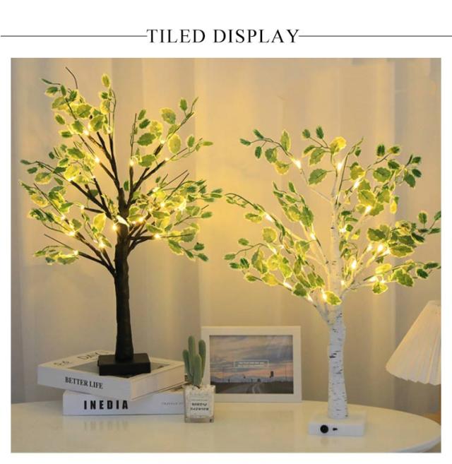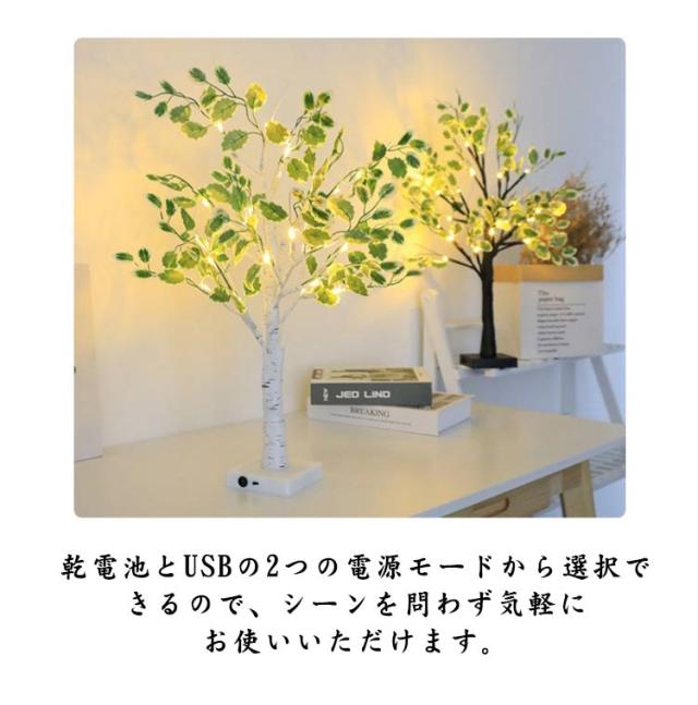 クリスマスツリー LEDライト 卓上ツリー 白樺 葉付き USB式 電池式 照明ライト イルミネーション ナイトライト 置物 北欧風 お洒落 寝室用 パーティー 結婚式 クリスマス飾り 屋内装飾 インテリア プレゼント 送料無料