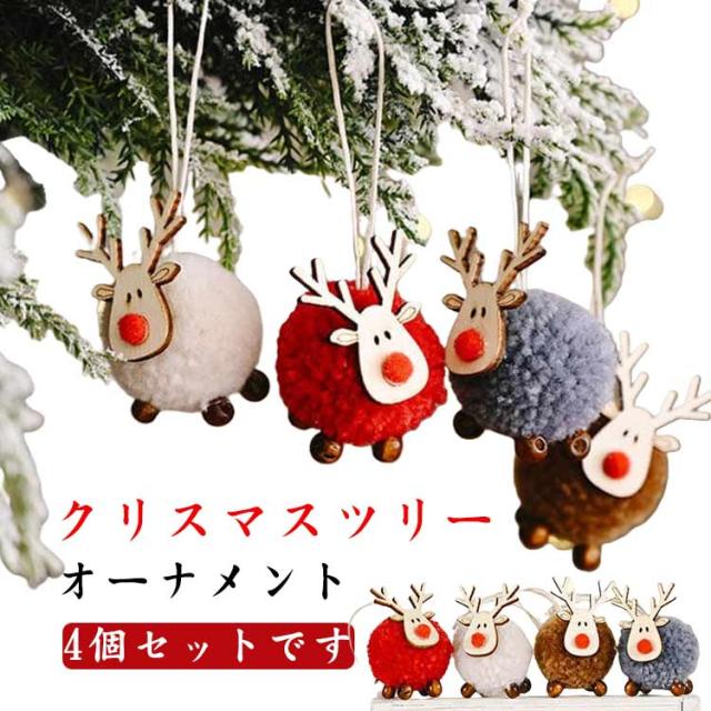 クリスマスツリー オーナメント 4個セット 可愛い トナカイ クリスマス装飾 ぬいぐるみ 木製 クリスマスツリー飾り 飾り付け デコレーション 贈り物 プレゼント パーティー 店舗装飾 自宅 壁掛け 玄関 子供部屋 送料無料