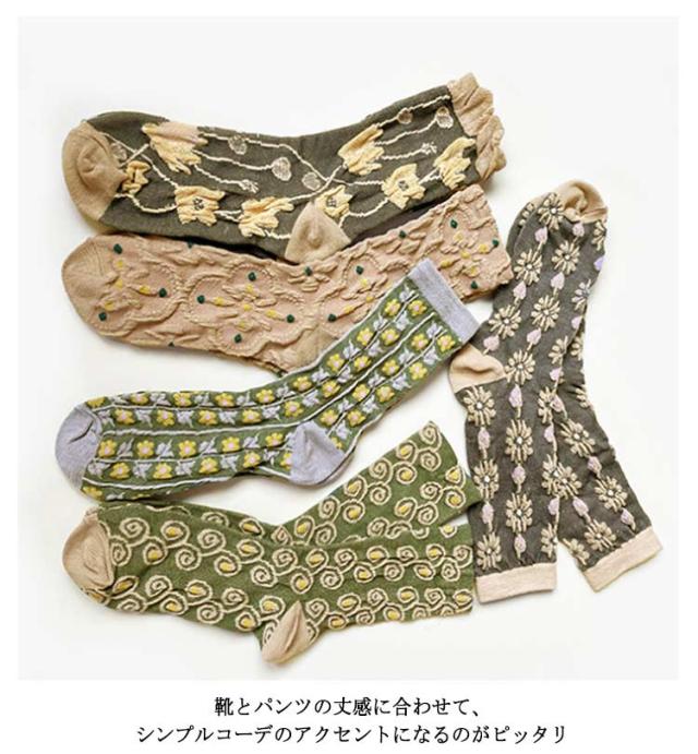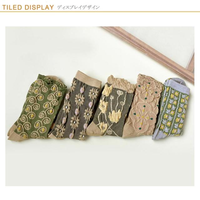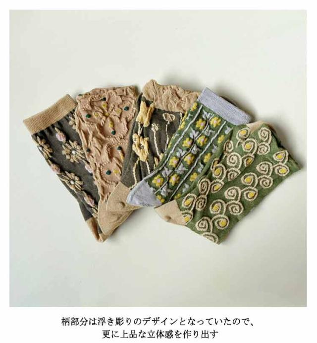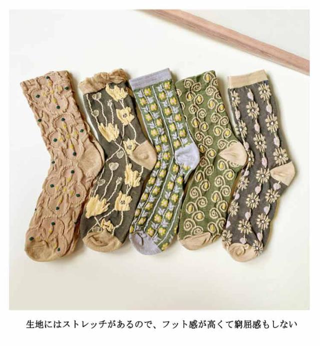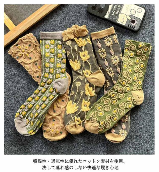 花柄靴下 5足入り レディース 立体柄 花柄 靴下 コットンソックス ソックス おしゃれ クルーソックス レトロ くつした コットンソックス 春 秋 冬 クルーソックス ストレッチ