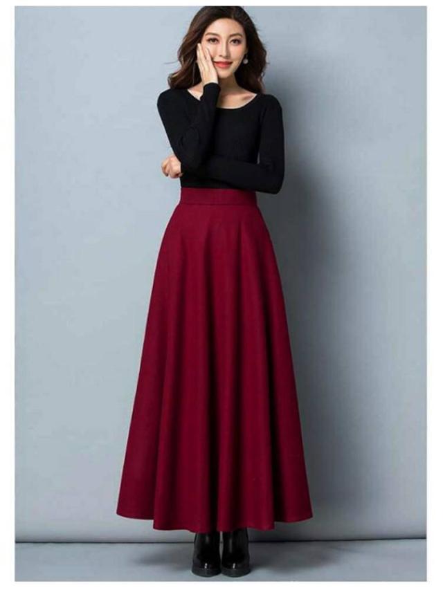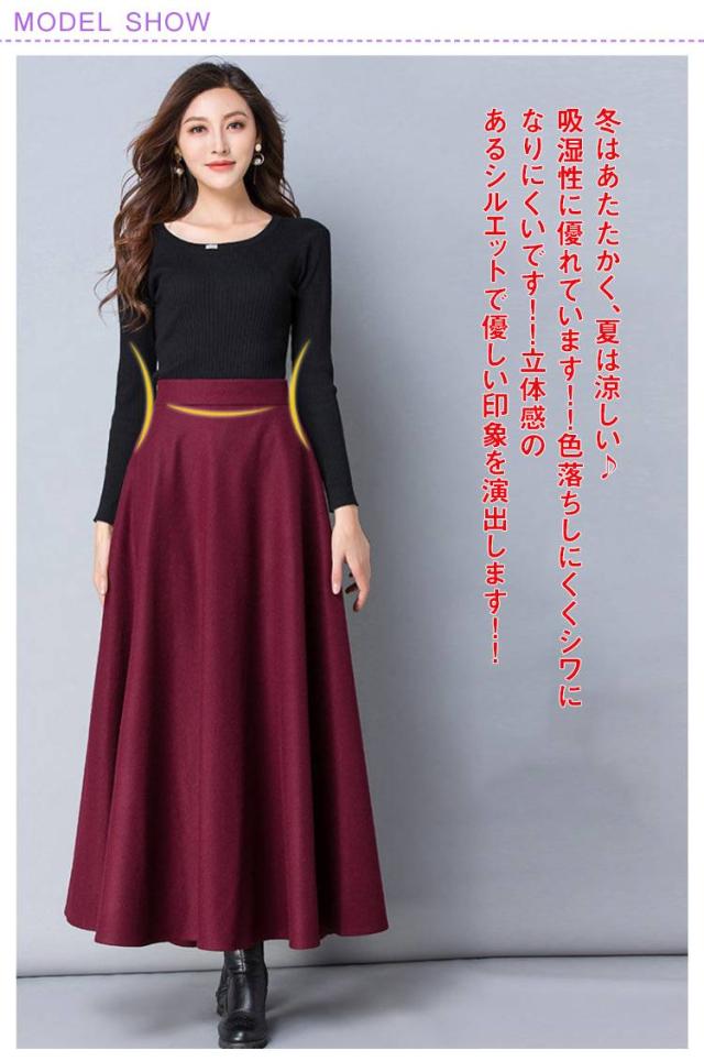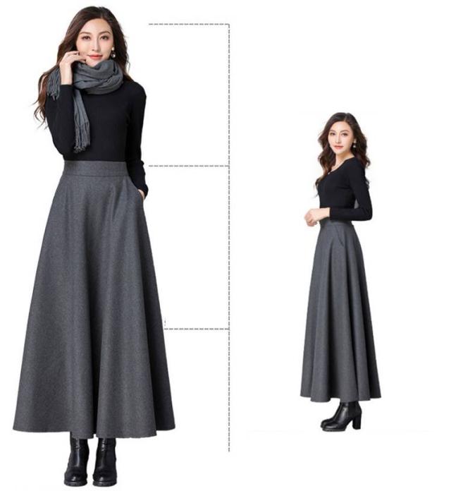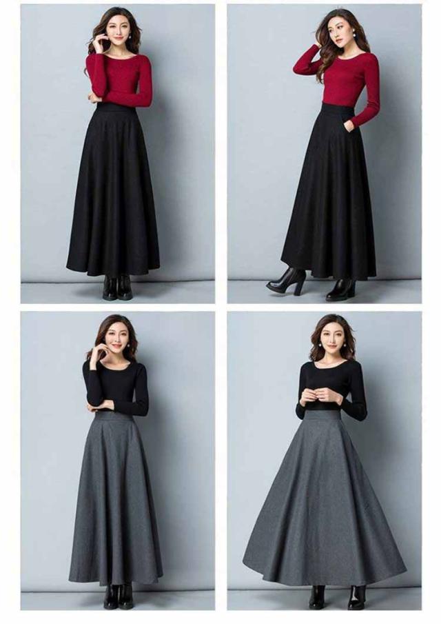 | 冬の女性のロングウールスカート!! 冬はあたたかく、夏は涼しい♪吸湿性に優れています!!色落ちしにくくシワになりにくいです!!立体感のあるシルエットで優しい印象を演出します!! | |