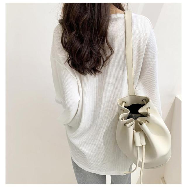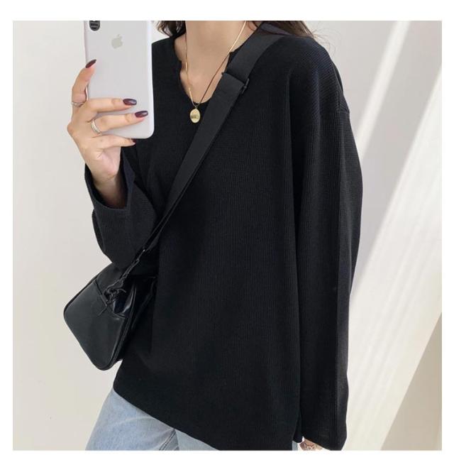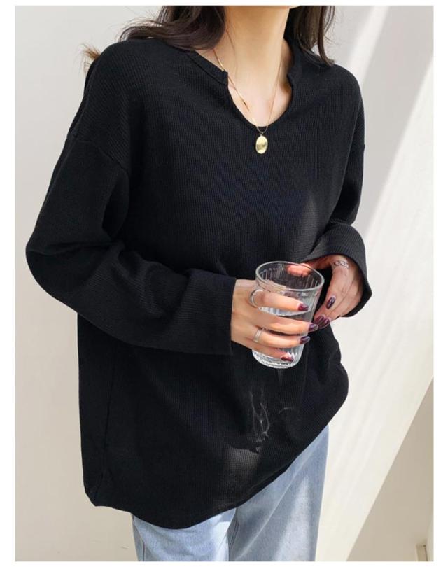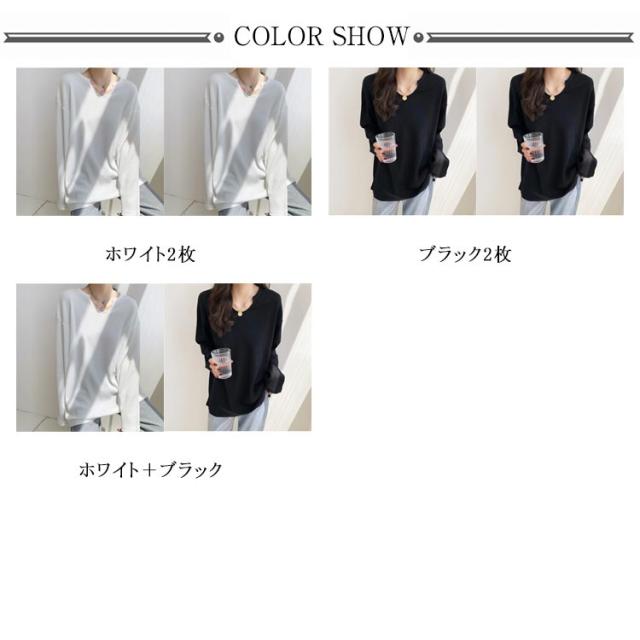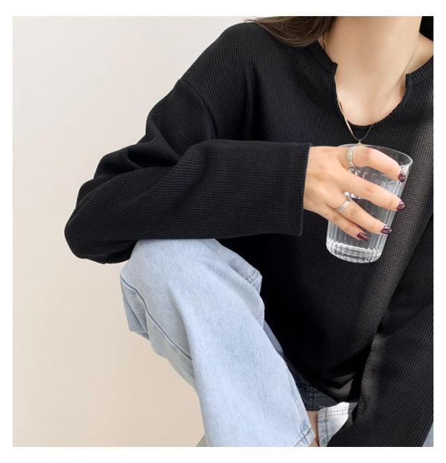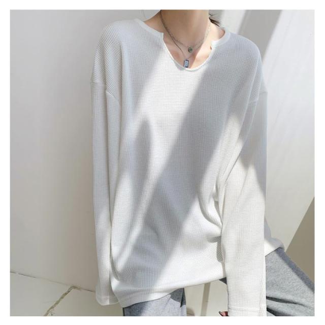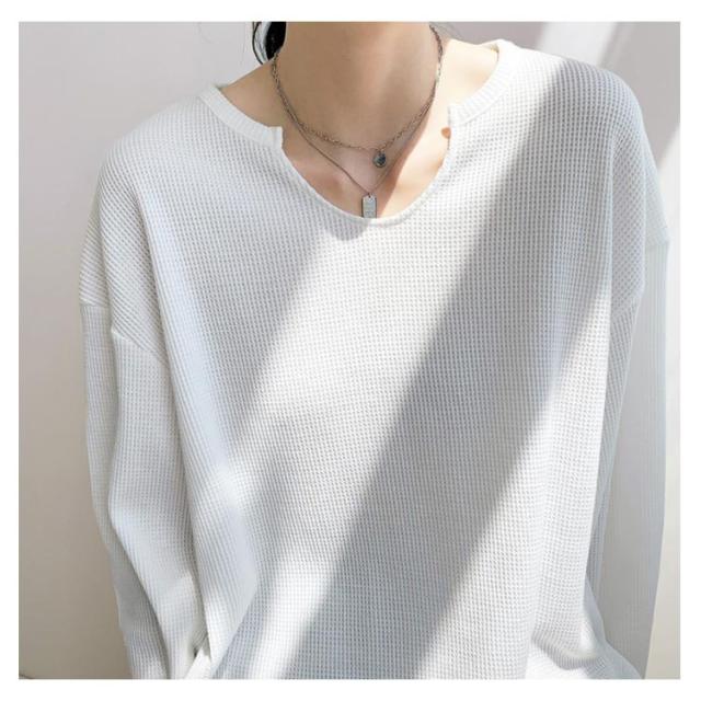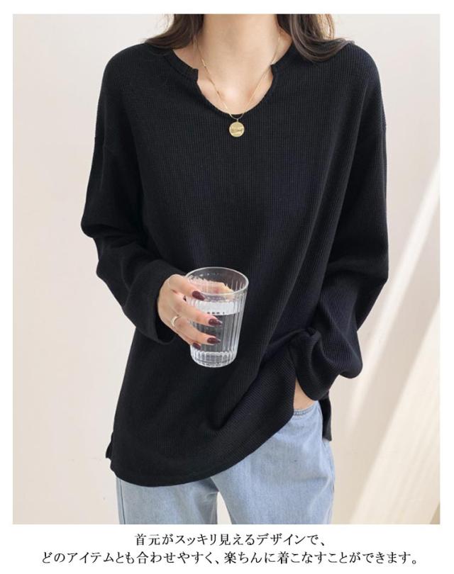 Tシャツ 2枚セット 2枚セット 無地 ワッフル レディース Vネック 長袖tシャツ トップス オーバーサイズ 着痩せ シンプル ゆったり ワッフル生地 ロンT 体型カバー ボリューム袖 カジュアル 春 秋 秋服 冬服