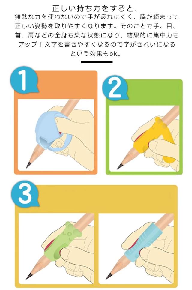 | 総合タイプ+3本指タイプ! 鉛筆に装着するだけで、簡単&楽しく鉛筆の持ち方を覚えられる補助器具のセット。【7個入り】 正しい持ち方をすると、無駄な力を使わないので手が疲れにくく、脇が締まって正しい姿勢を取りやすくなります。そのことで手、目、首、肩などの全身も楽な状態になり、結果的に集中力もアップ!文字を書きやすくなるので字がきれいになるという効果もok。 耐久性に優れた安全なシリコン素材で引っ張ってもちぎれず、丈夫で長持ち、柔らかいから指が痛くならずに疲れにくく、繊細な子どもの手にも優しくフィットします。 | |