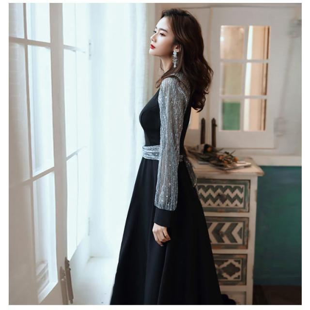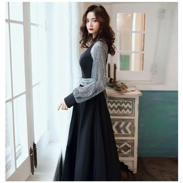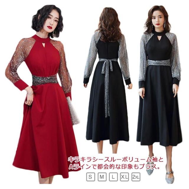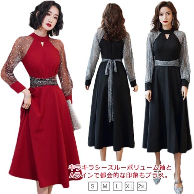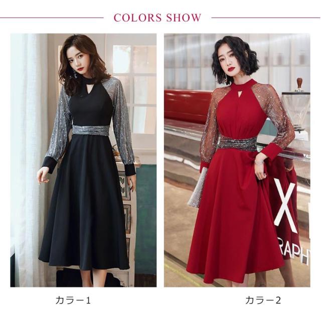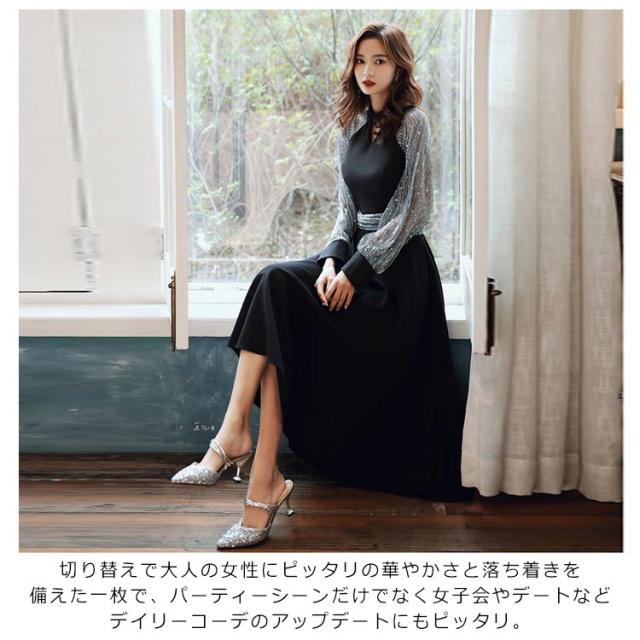 配色 切り替え フレアワンピース キラキラ お呼ばれ ロングワンピース 可愛い 結婚式 配色 披露会 演奏会 同窓会 成人式 謝恩会 きれいめ S M L XL