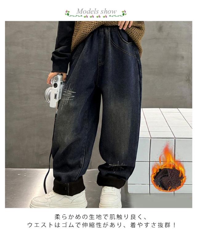 裏起毛 デニム パンツ キッズ 男の子 子供 ジーンズ ジーパン ウエストゴム 長ズボン 小学生 中学生 ジュニア ボトムス 防寒 あったか 韓国子供服 秋冬