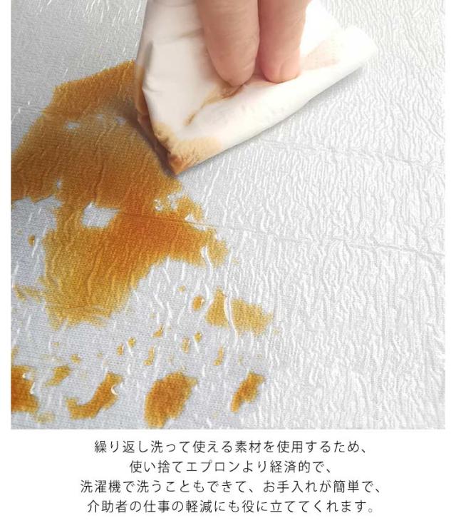 | 【タオル地+裏TPU】 食事の時に料理の飛び跳ねや食べこぼしで洋服を汚さないように洋服の上にカバーして汚れ防止に大活躍してくれるエプロンが持っておけば、衣服の汚れを気にせずに、食事をより快適に楽しめます。 床を汚すことがなくなるエプロン下端を折り返してボタンで留めるとポケットになる仕様に設計しており、食べこぼしもしっかりキャッチできて、床掃除をする事も軽減してくれます。 繰り返し洗って使える素材を使用するため、使い捨てエプロンより経済的で、洗濯機で洗うこともできて、お手入れが簡単で、介助者の仕事の軽減にも役に立ててくれます。 | |