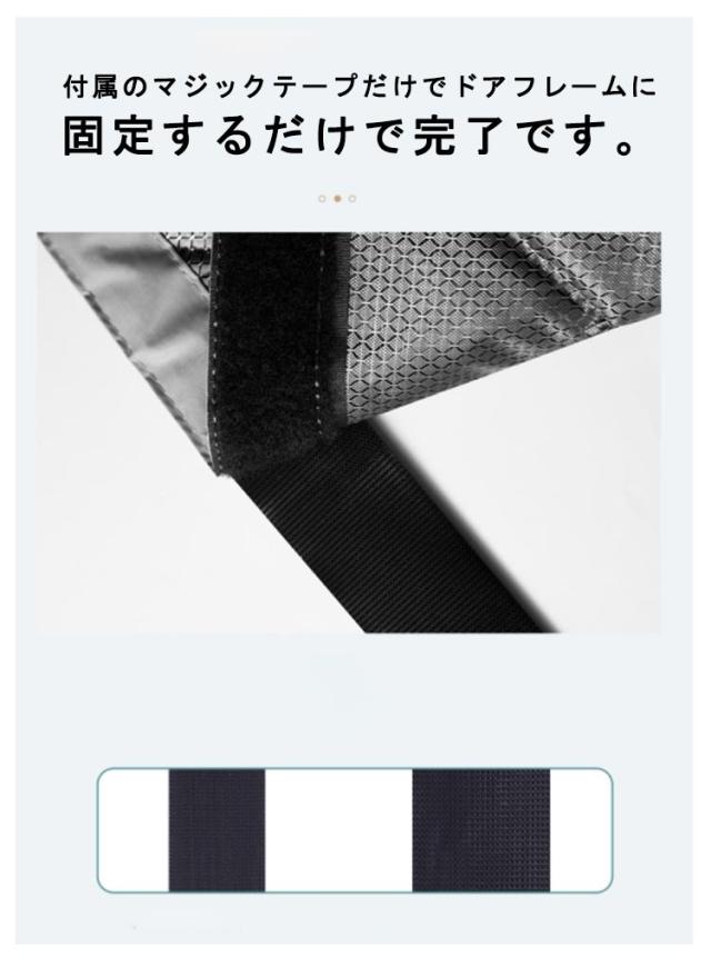 | 目隠し・防寒・保温・防風・冷暖房効率UP!マグネット開閉式の玄関カーテンです。 付属のマジックテープだけでドアフレームに固定するだけで完了です。 表面の防水生地は耐久性に優れて、風、雨、ほこりを防ぐのに効果的です。 底部には重力スティックが付いており、風に吹かれて動くのを防ぎ、しっかりと固定するのに役立ちます。 カーテンの中央がマグネットになっているので、人や猫、犬が通過すると自動的に閉まります。 内部は中綿入りなので、冷風の侵入を防ぎ、寒い日でも暖かく過ごせます。 せっかく冷暖房をつけても、階段や別の部屋から空気が流れてなかなか快適ならない。 | |