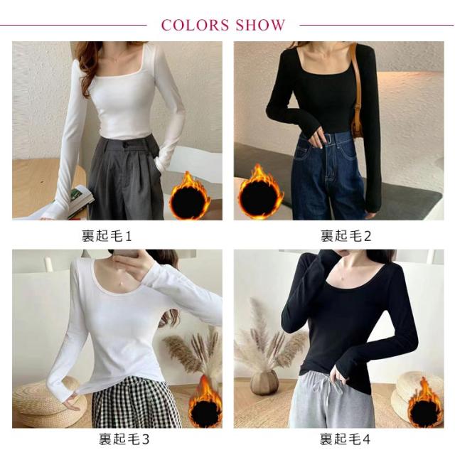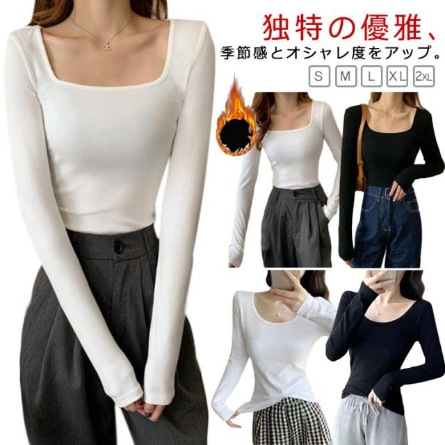 裏起毛 長袖 インナー スクエアネック レディース 秋冬 カットソー 暖かい 通勤 ロングTシャツ tシャツ スクエアネック 長袖インナー シンプル 伸縮性 重ね着風 レイヤード カジュアル L 日常 S M トップス XL 2XL