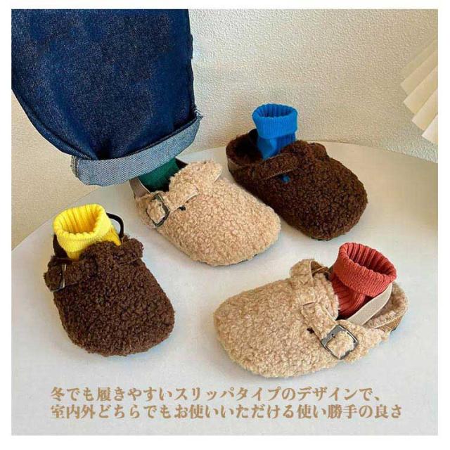 キッズ ボアスリッパ 子ども靴 もこもこ カジュアル シューズ ベビー 防寒 柔らかい ふわふわ 履きやすい 秋冬 可愛い サンダル 子供シューズ ファー 冬 スリッパ 暖かい 滑りにくい 靴 ルームシューズ 室内 屋外