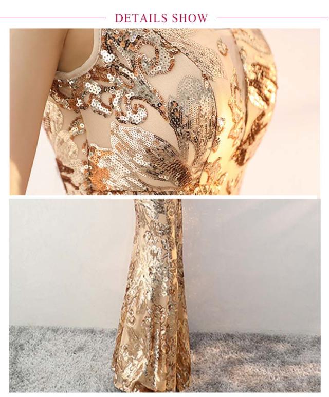 | キラキラ手作りスパンコールのマーメイドラインドレス。 ビッグスリット入り、エレガントなスタイル! 結婚式パーティー、披露宴様々なシーンに対応。 | |