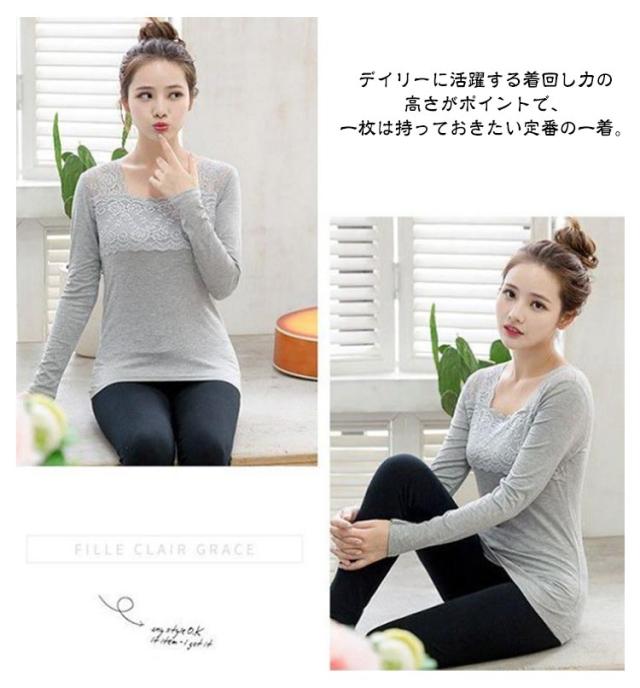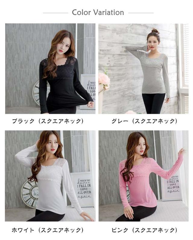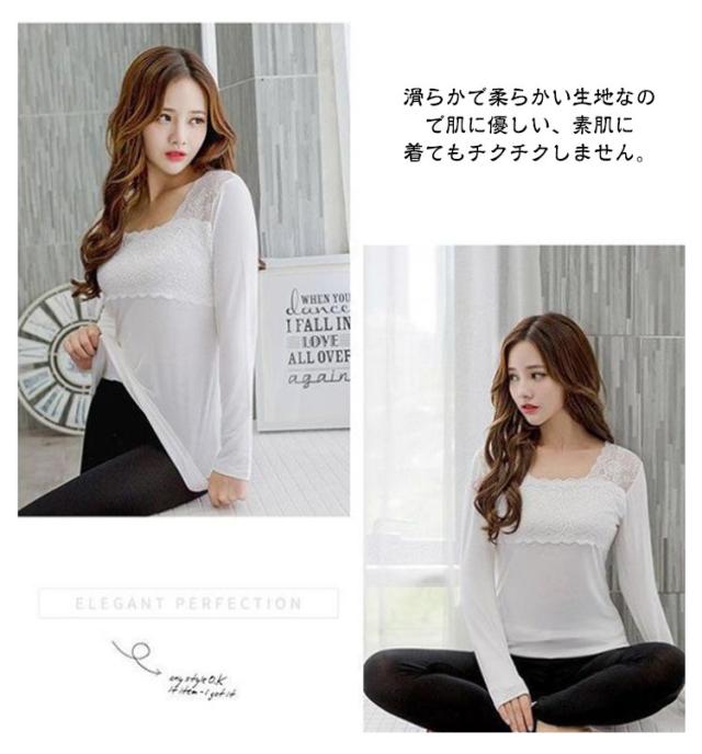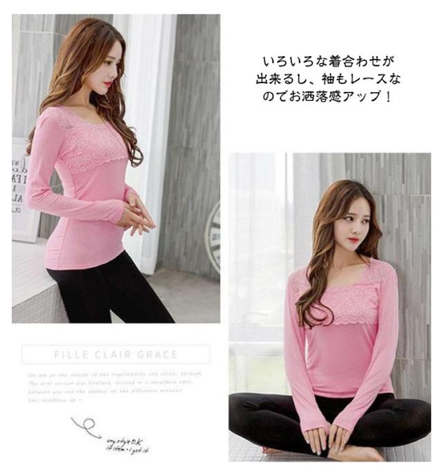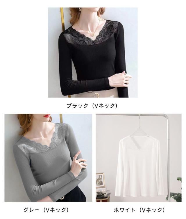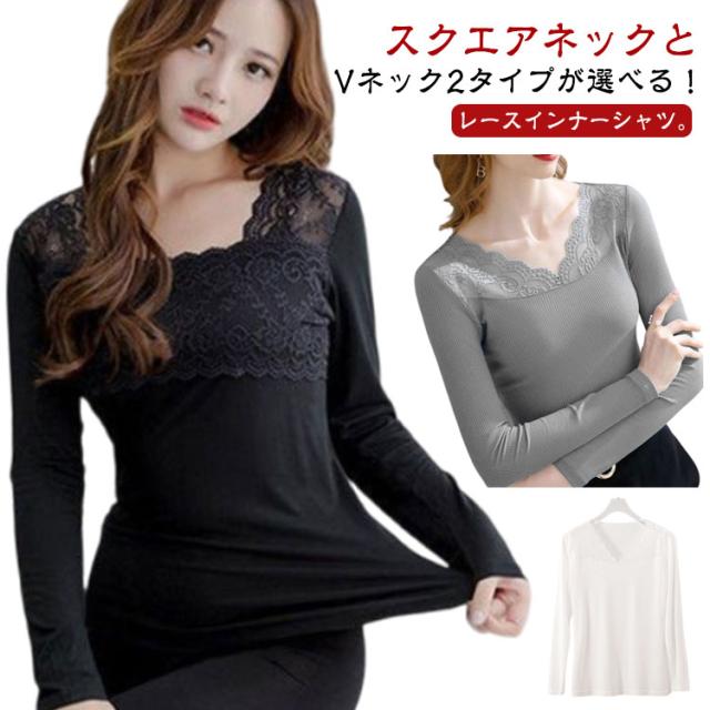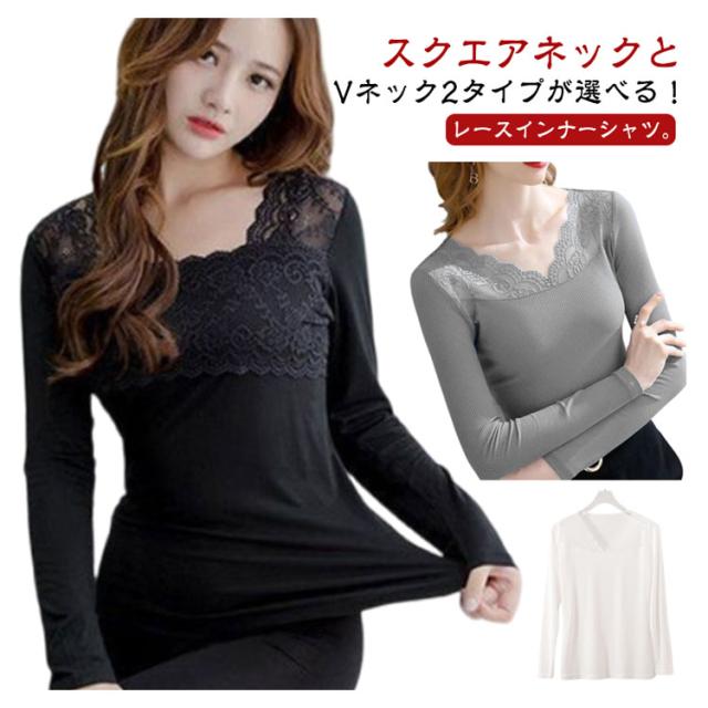 レース インナーシャツ 無地 花柄レース スクエアネック 長袖 送料無料 カットソー 薄手 レディース Vネック トップス 肌着 伸縮 ストレッチ レース インナー 肌隠し レースインナー きれいめ 送料無料 大人女性 長袖tシャツ 可愛い 重ね着