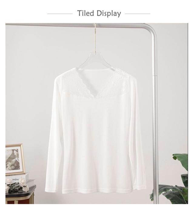 | スクエアネックとVネック2タイプが選べる!レースインナーシャツ。 滑らかで柔らかい生地なので肌に優しい、素肌に着てもチクチクしません。 しっとりとした薄手の生地を上品なレースが縁取った見せられるインナー。 いろいろな着合わせが出来るし、袖もレースなのでお洒落感アップ! デイリーに活躍する着回し力の高さがポイントで、一枚は持っておきたい定番の一着。 | |