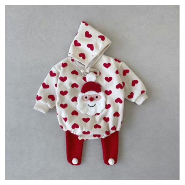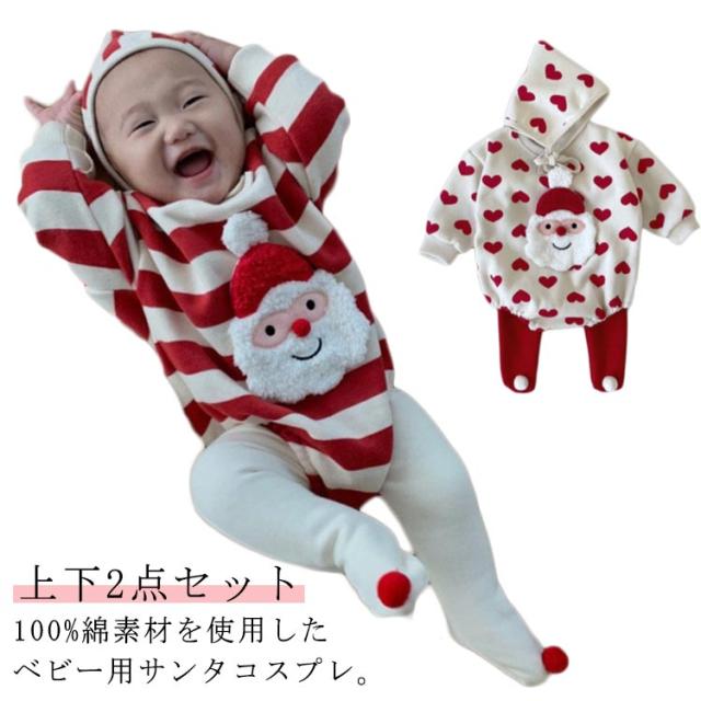 上下セット パンツ サンタ 仮装 サンタ衣装 サンタ コスチューム クリスマス衣装 コスプレ 綿 70 ロンパース 衣装 レギンス 赤ちゃん 帽子付き サンタクロース 子供 女の子 男の子 長袖 2点セット ベビー ハート柄 かわいい 60 クリスマス衣装 80 90