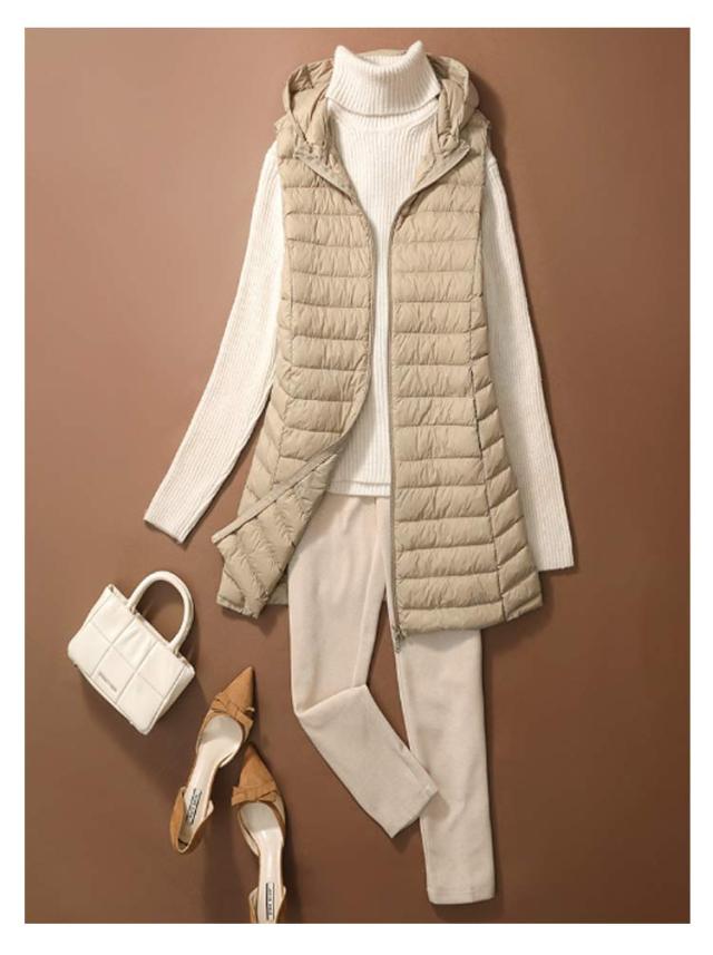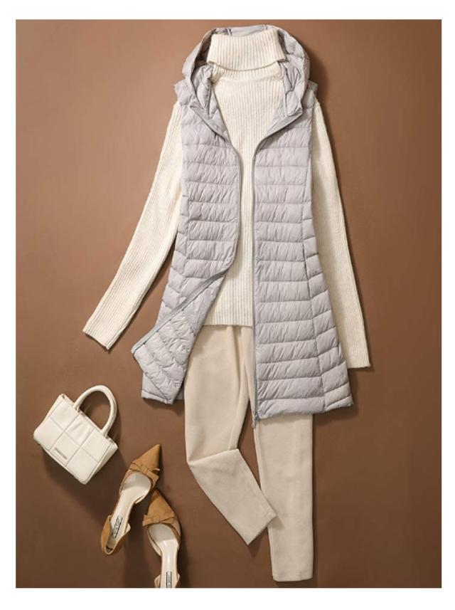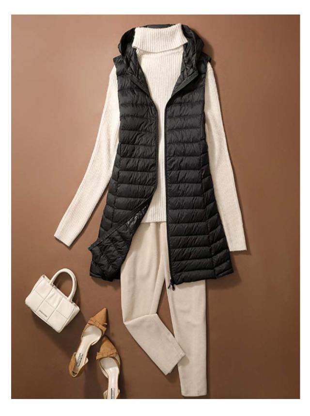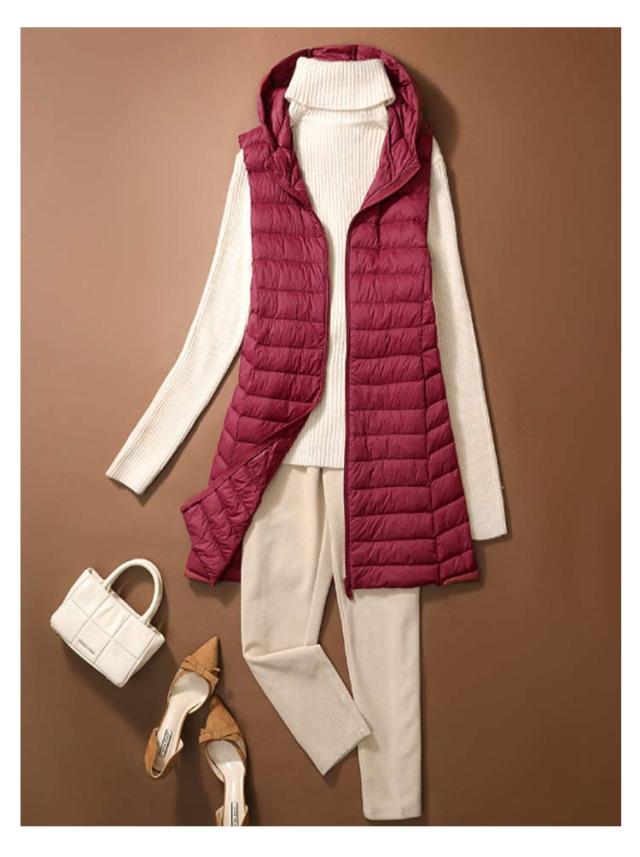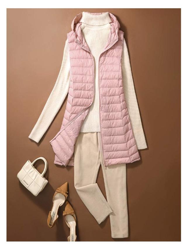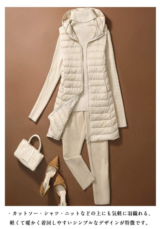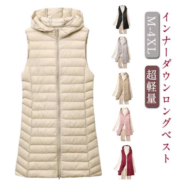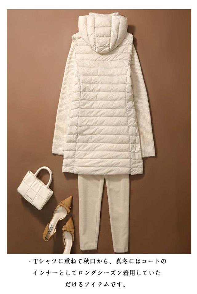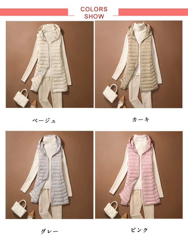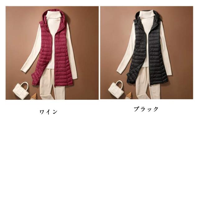 ロング 祖母 ジップアップ フード付き レディース インナーベスト 防寒 超軽量 薄手 おしゃれ 袖なし ノースリーブ アウター ダウンアウター ポケッタブル インナーダウン スリム ダウンジャケット 誕生日 贈り物 ダウンベスト お祝い 敬老の日 秋
