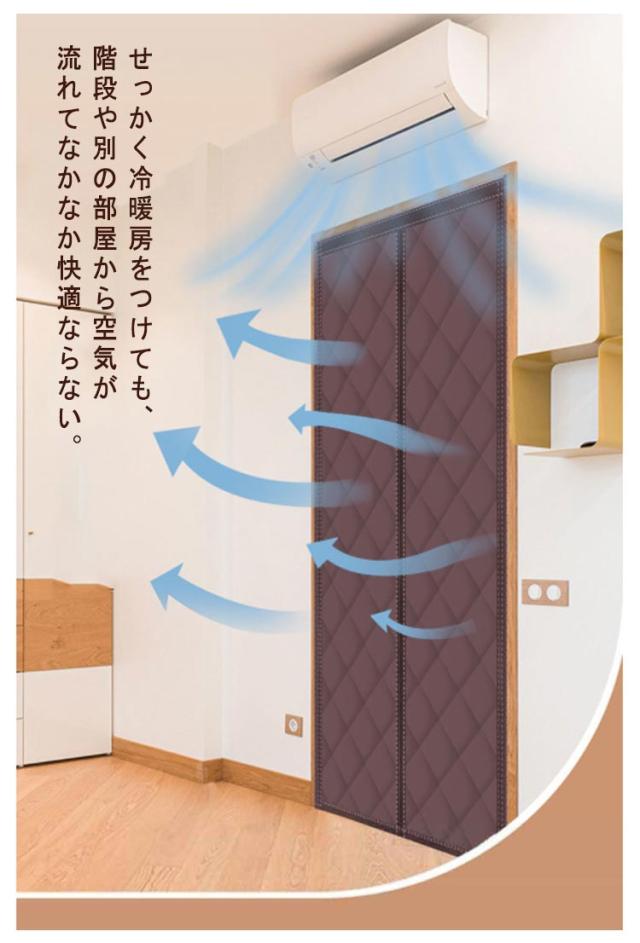 | 目隠し・防寒・保温・防風・冷暖房効率UP!マグネット式の間仕切りカーテンです。 夏はエアコンから出る冷気の漏れを防ぎ、冬は室内の暖房の漏れも防ぎます。 付属のマジックテープだけでドアフレームに固定するだけで完了です。 使わない季節には取り外し、折りたたんでコンパクトに収納できます。 カーテンの中央がマグネットになっているので、人や猫、犬が通過すると自動的に閉まります。 内部は中綿入りなので、冷風の侵入を防ぎ、寒い日でも暖かく過ごせます。 せっかく冷暖房をつけても、階段や別の部屋から空気が流れてなかなか快適ならない。 | |