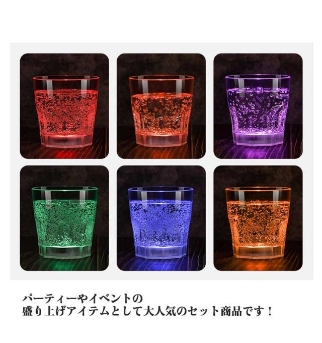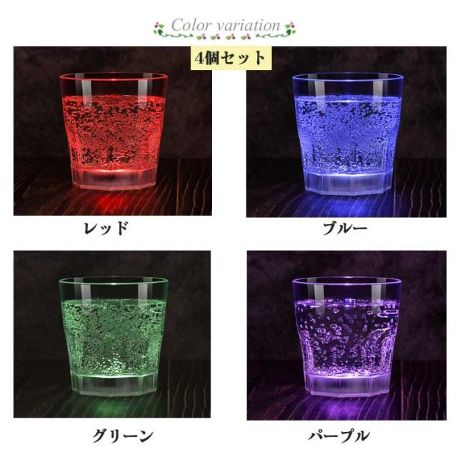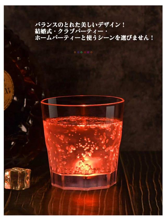 4個セット ロックグラス LED グラス お酒 250ml 光る グラス 焼酎グラス コップ プラスチック ウイスキー 光るロックグラス ネオン 割れない おしゃれ センサーライト 光る LEDグラス 結婚式 キャンプ クリスマス パーティー