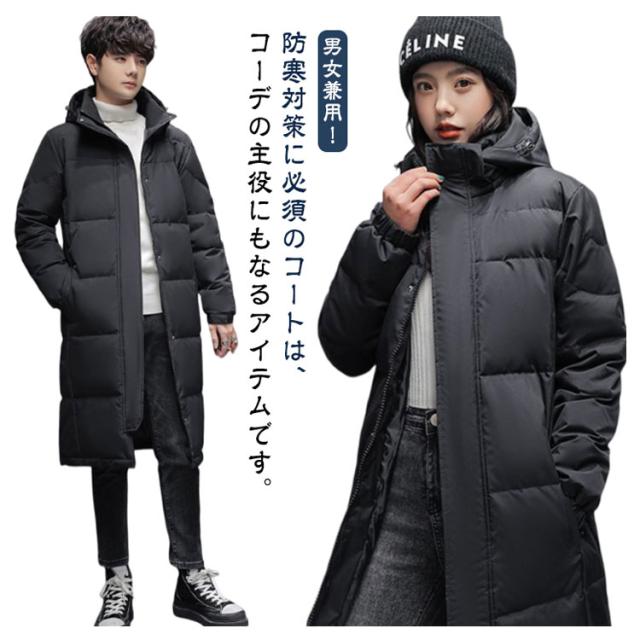 ダウンロングコート ビジネス レディース 秋冬 メンズ ロング丈 ダウンコート ベンチコート ジャケット 防寒 アウター ダウンロングコート 厚手 ロングコート 無地 ダウン90% 長袖 フード付き 軽量 保温 防寒対策 ハイネック コート