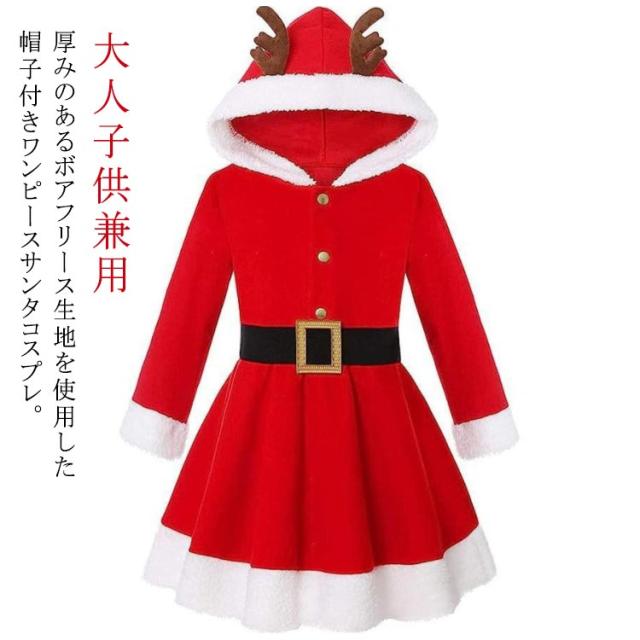 帽子付き コスプレ サンタ衣装 クリスマス 子供 長袖 大人 110cm−170cm ボアフリース 女子 サンタ コスチューム 衣装 仮装 女の子 ワンピース ドレス キッズ サンタ サンタさん サンタクロース クリスマスコスプレ クリスマス パーティ 親子 コスプレ