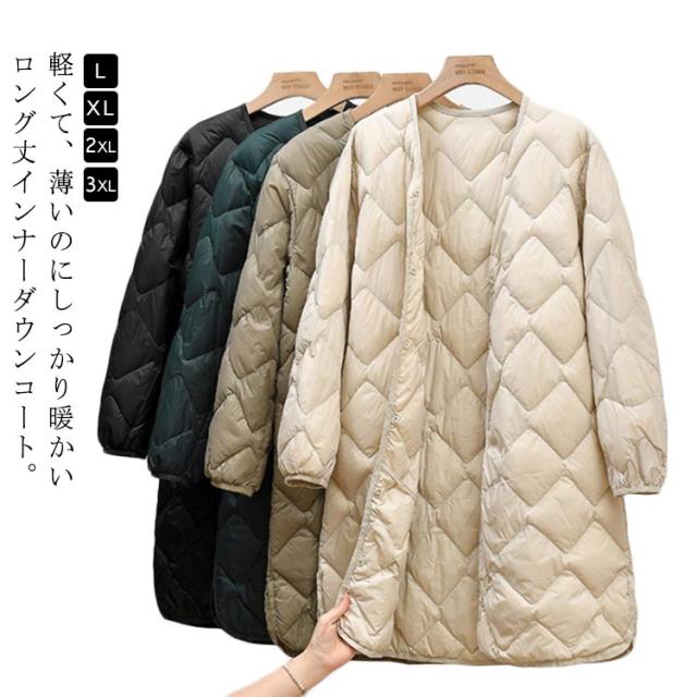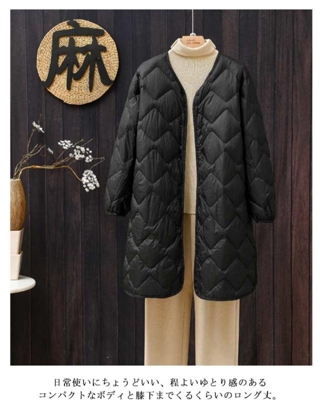 レディース ロングコート ダウンコート コート 可愛い 暖かい 軽量 インナーダウンコート インナーダウン ライトダウン インナーダウンコート ノーカラー あったか ダウンジャケット ロング丈 インナージャケット 冬 防寒 保温