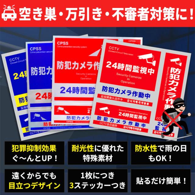 防犯ステッカー 防犯 防水 耐光 ステッカー シール 赤 青 防犯グッズ 防犯カメラ ドア 壁 窓 ガラス 貼る 貼り付け 監視 防犯シール 防止 侵入 フィルム シート 家 お店 屋外 見守り 対策 空き巣 万引き 泥棒 マンション セキュリティ 目立つ ダミー 闇バイト 犯罪 光沢感