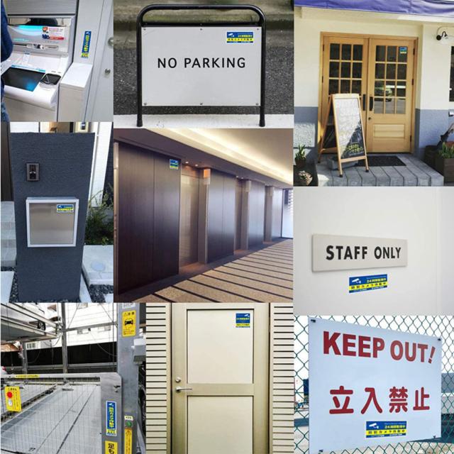 このステッカーをドアや窓、壁などの目立つ位置に貼り付けておくだけで防犯意識をアピールすることができ、防犯効果がUPします。