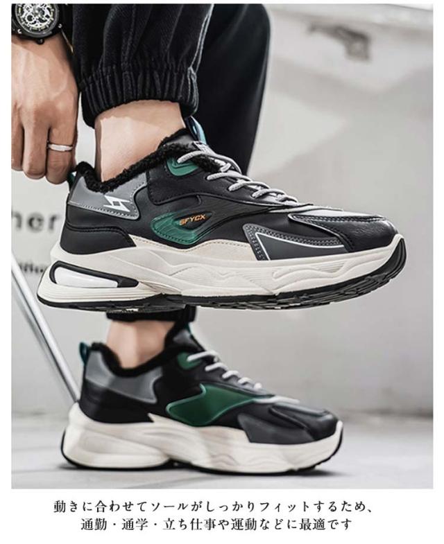 | メンズボア付きあったかスニーカー 内側が全面ファーなので、ほどよいボリュームで足元あったか! 軽量なので長時間履いていても疲れにくい クッションが衝撃を分散し、足への負担を大幅に軽減してくれます。 動きに合わせてソールがしっかりフィットするため、通勤・通学・立ち仕事や運動などに最適です | |