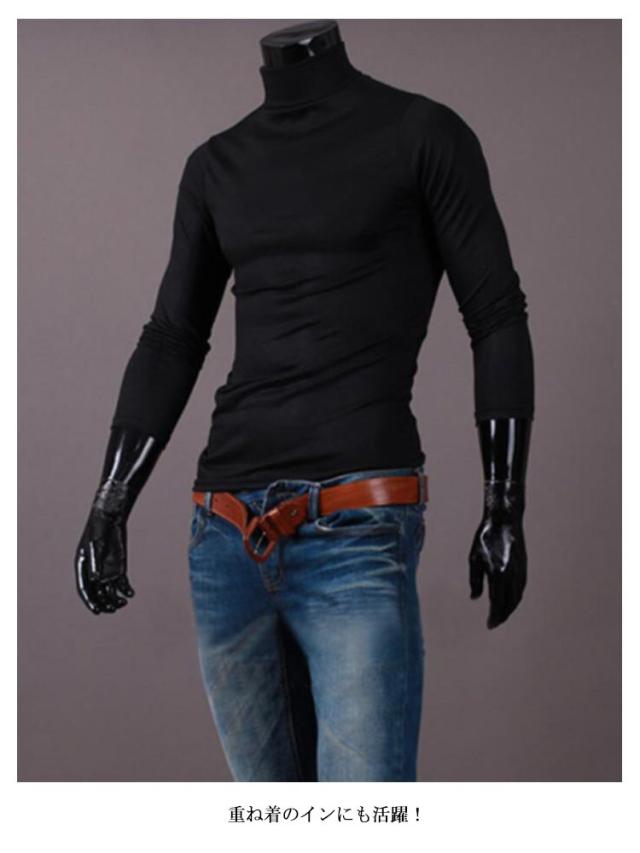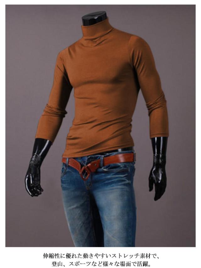 メンズ tシャツ インナー 長袖 保温 送料無料 タートルネック トップス ロンT 無地 ハイネック カットソー アンダーウェア スリム フィット カットソー ストレッチ 秋服 シンプル カジュアル 秋 春