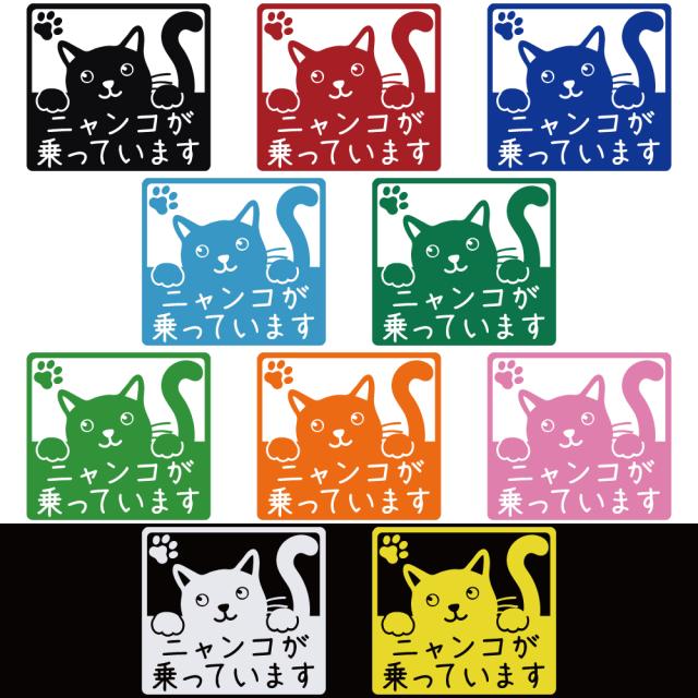 ステッカー 【 ニャンコが乗っています キャットインカー 】 選べる10色 縦15cm×横16cm オリジナルステッカー ネコが乗ってます 猫が乗っています カッティングステッカー
