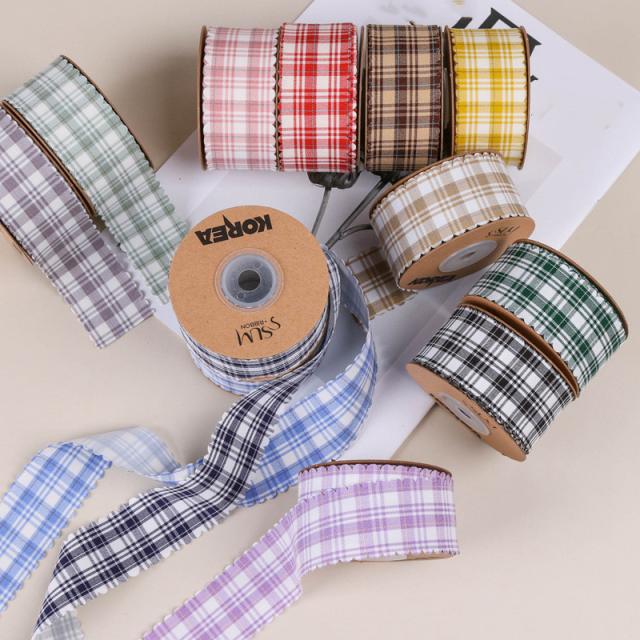 チェックリボン 幅38mm アクセサリーパーツ 手芸 クラフト ラッピング 資材 ハンドメイドパーツ デコパーツ 可愛い 手作り スカラップ リボン レディース ファッション 小物 服飾 ヘアバンド ヘアゴム 花束包装