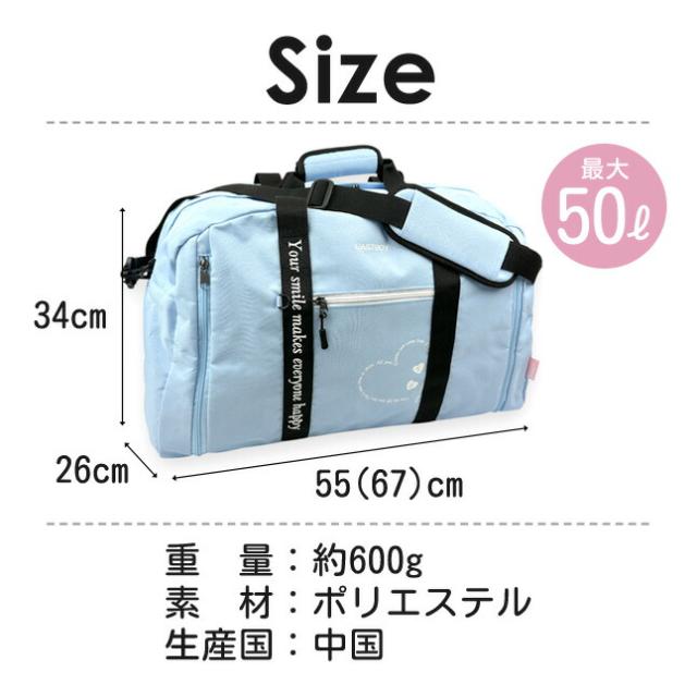 サイズ:ボストン 約W55(67)×H34×D26cm/ナップサック 約W33×H37×D1(11)cm