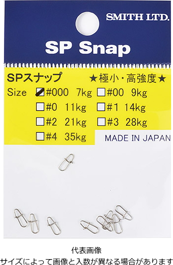 SPスナップは、一般的なスナップと比べ全長が短く、超小型で取り付け時にそのルアーへの自重や姿勢に影響する事が少なく、フックの担ぎなども軽減できる事になります。また、サイズに似合わず高強度を実現。国産の高品質ステン線材を使用し、国内生産をした製品です。