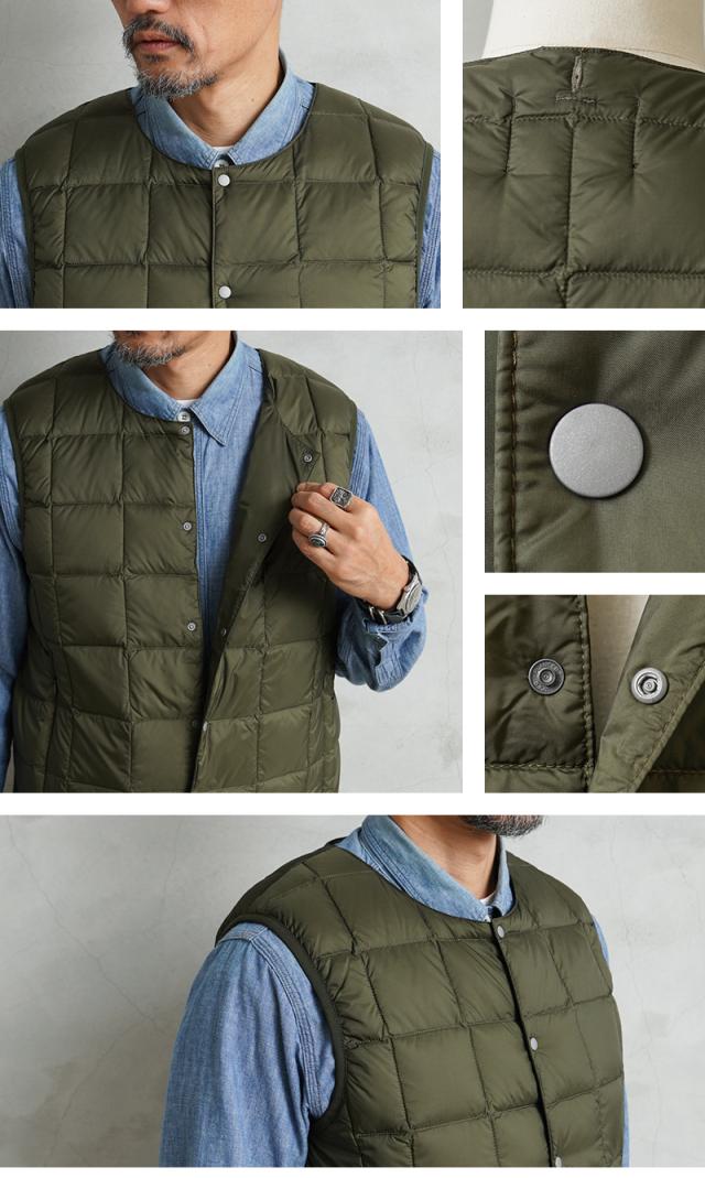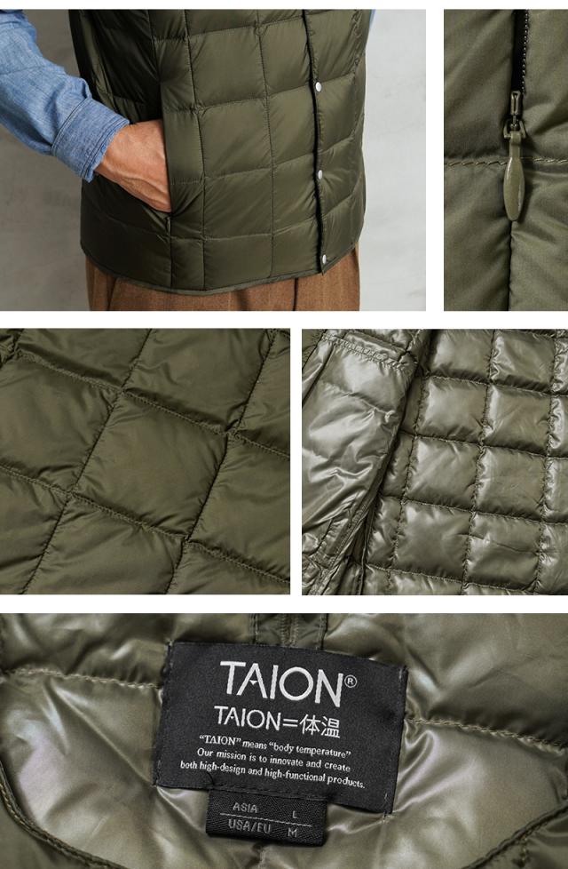TAION タイオン TAION-004 クルーネックボタン インナーダウンベスト【E8】【Sx】【R】|メンズ ベスト インナーダウン ミリタリーファッション クルーネック 軽量 防寒 撥水 アウトドア 羽織り アウター