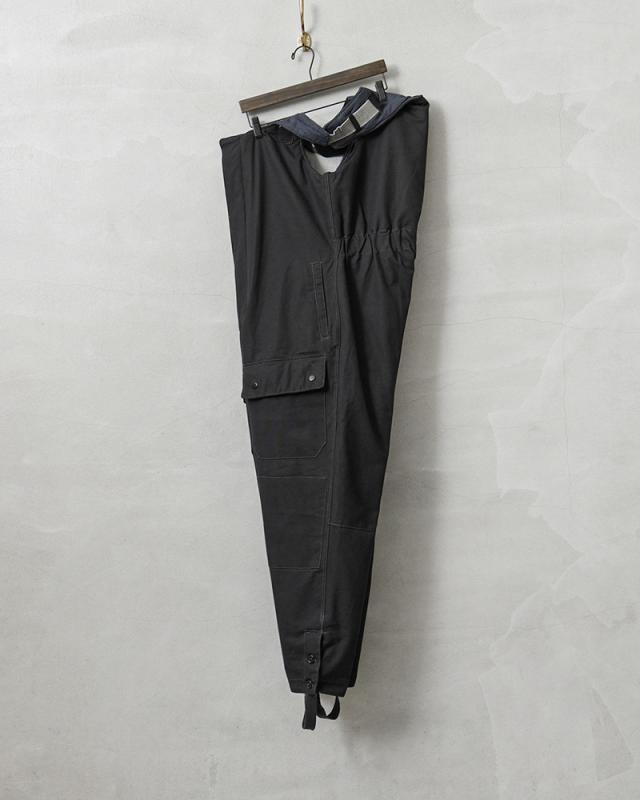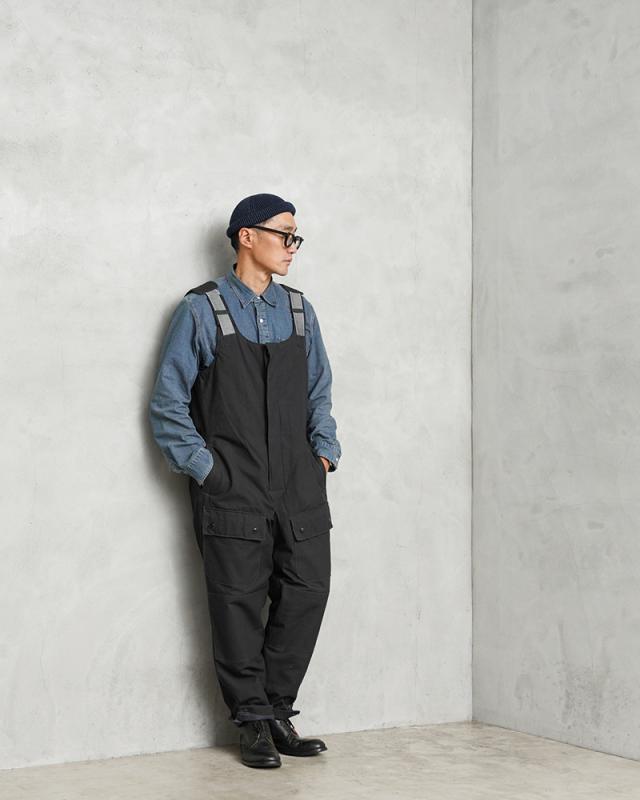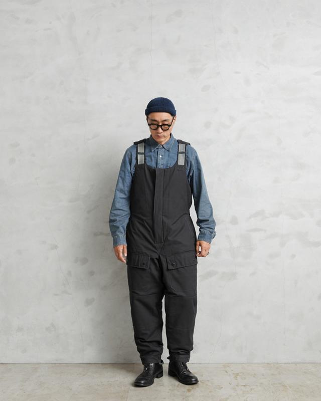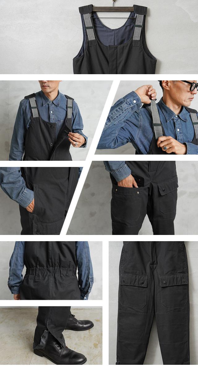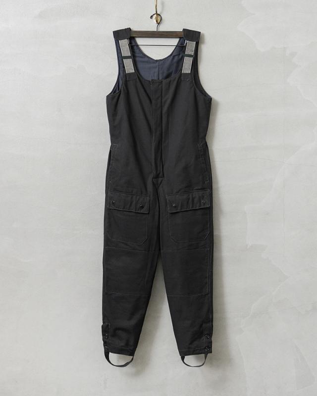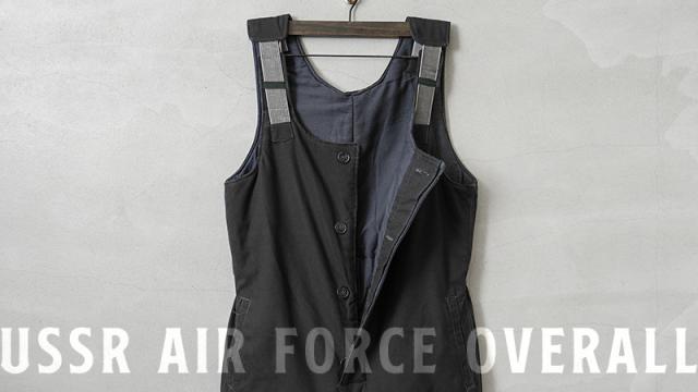 ソ連(ソビエト連邦)崩壊前の1980年代に主に製造された、旧ソ連空軍で使用されていたオーバーオールです。表地はミリタリーウェアとしてはあまり見かけることのないシックで雰囲気のあるブラックカラーで、コットン製のキャンバス素材が使用されたタフで重厚感のあるデザインです。空軍の中でもパイロットではない、地上で任務にあたる兵士やメカニックなどはブラックカラーのアイテムも使用していました。肩の部分は平ゴムが二重になった特殊なサスペンダーになっており、動作に合わせてゴムが伸縮する機能性の高いデザインになっています。