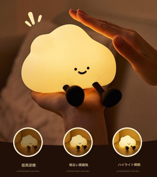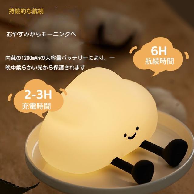ナイトライト タイマー 3段階 授乳ライト 明るさ調整 テーブルライト 雲 シリコン 目に優しい かわいい 授乳ライトUSB充電 1200mAh