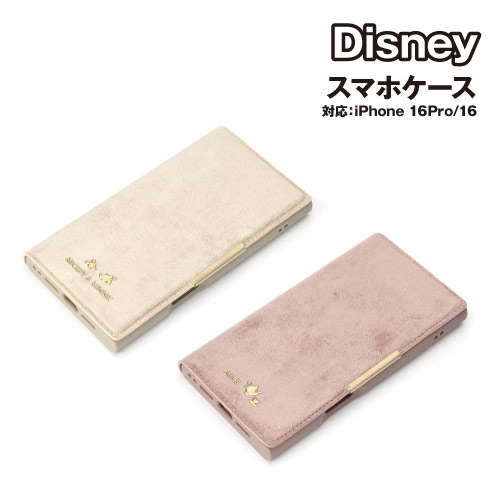 送料無料 ディズニー iPhone16 / iPhone16Pro用 スエード調クリアフリップケース PG-D24A-BCF01-2 / ミッキー&ミニー アリス