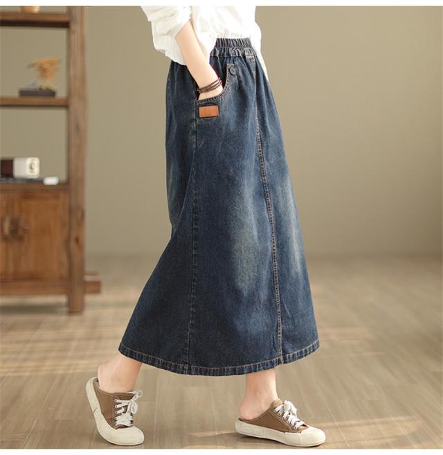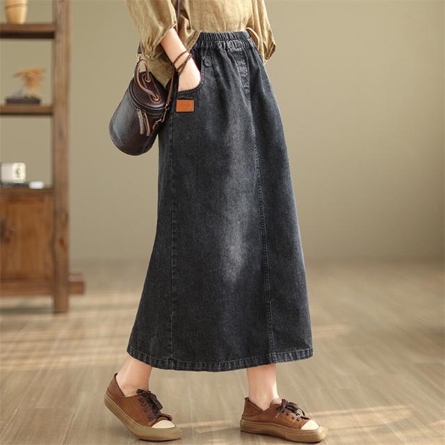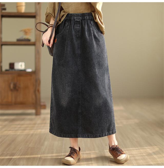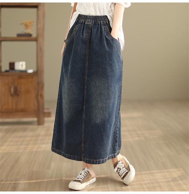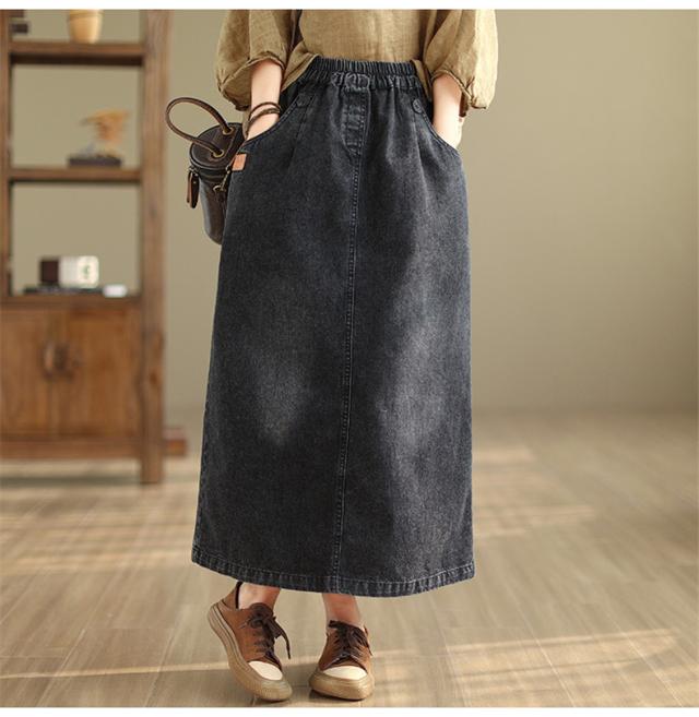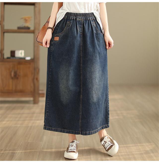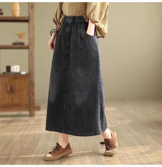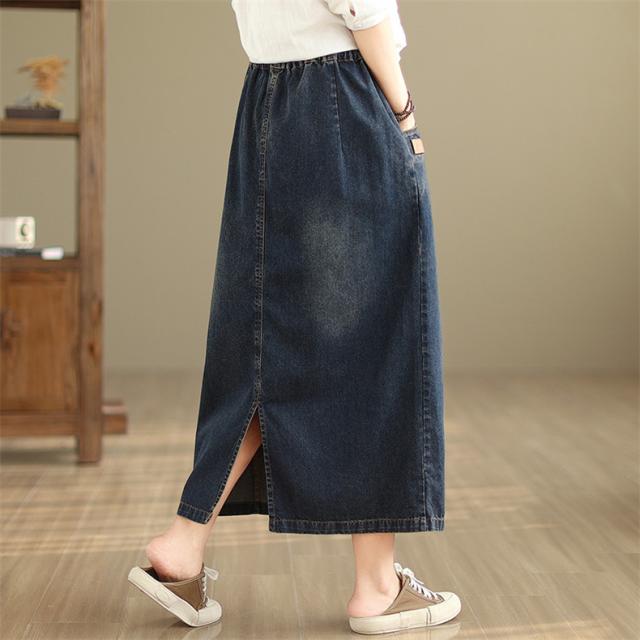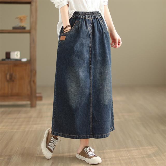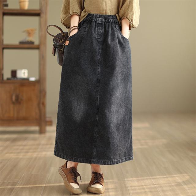 デニムスカート レディース 秋冬 ロング丈 ゆったり 自然に体型カバー タイトスカート 細見え 高見え 色落ちデニムスカート ウエストゴム 穿き心地抜群