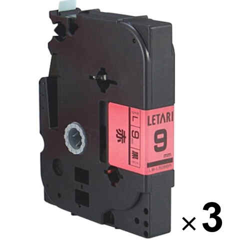 マックス ビーポップミニ テープカセット レタリテープ 赤に黒文字 9mm×8m LM-L509BR 3個セット 送料無料
