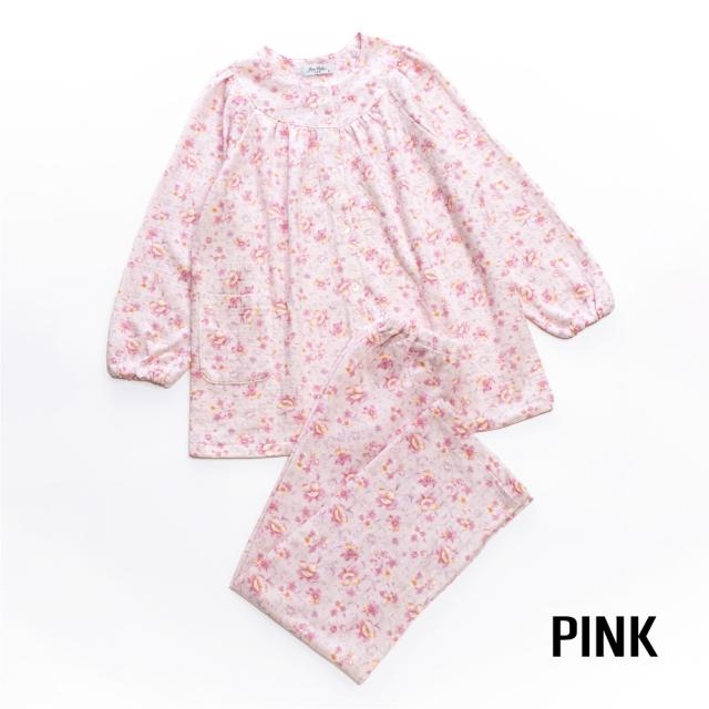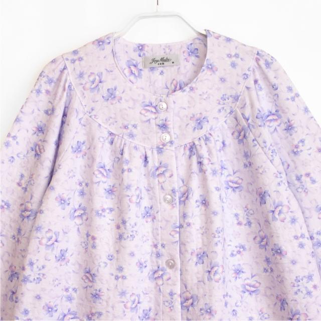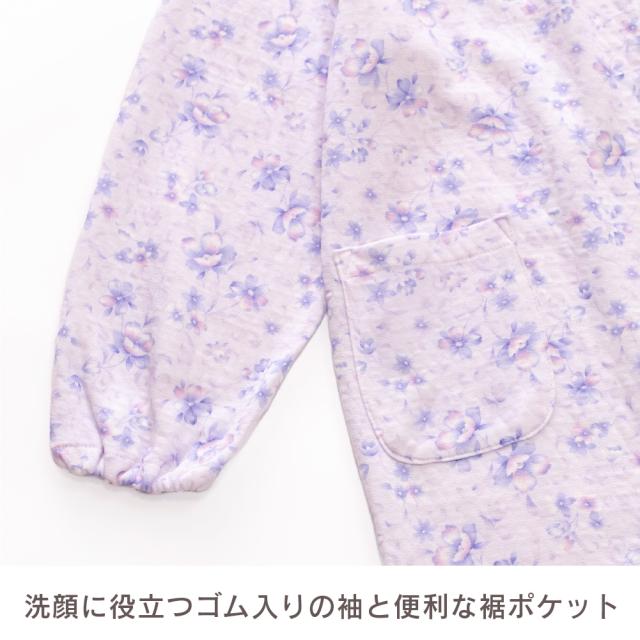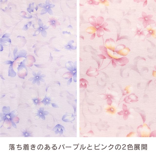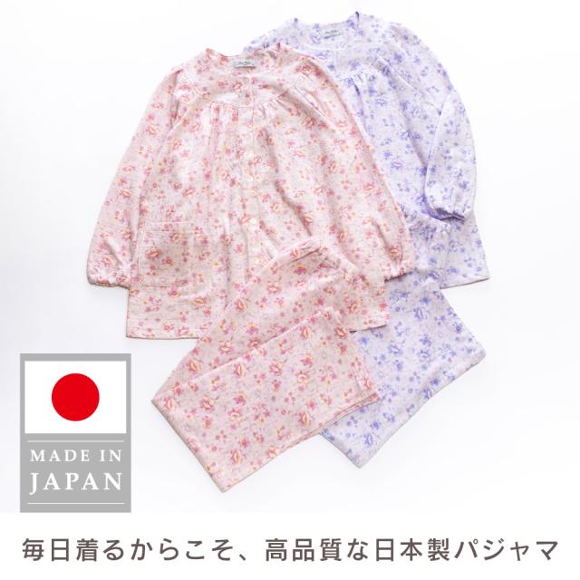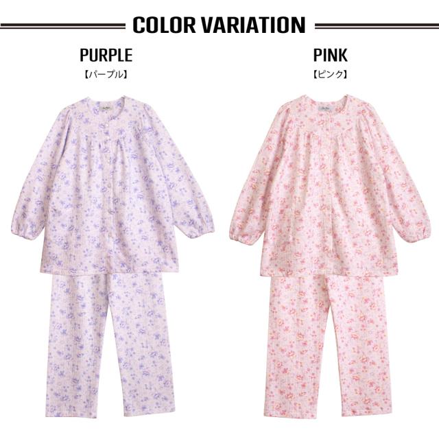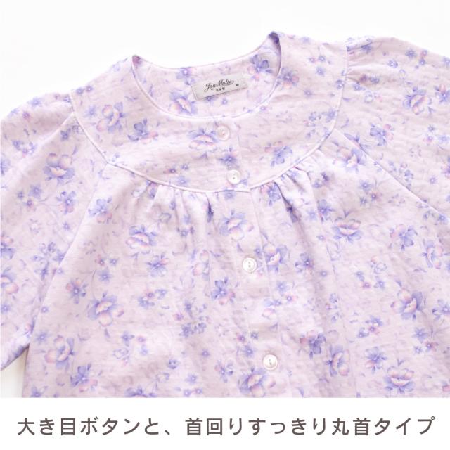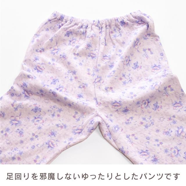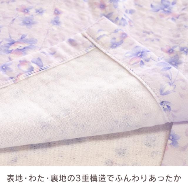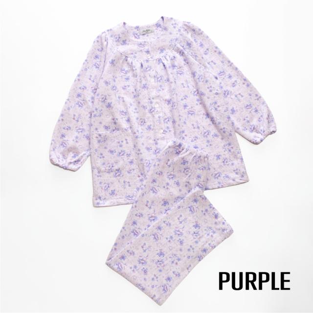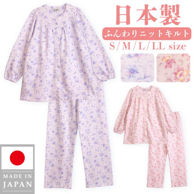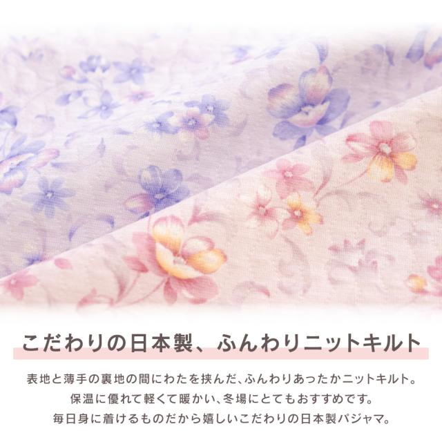日本製 レディース パジャマ ニットキルト 中綿入り 長袖 秋 冬 前開き ボタン 花柄 パープル ピンク S M L LL ギフト プレゼント 母の日 敬老の日 旅行 入院 お客様用