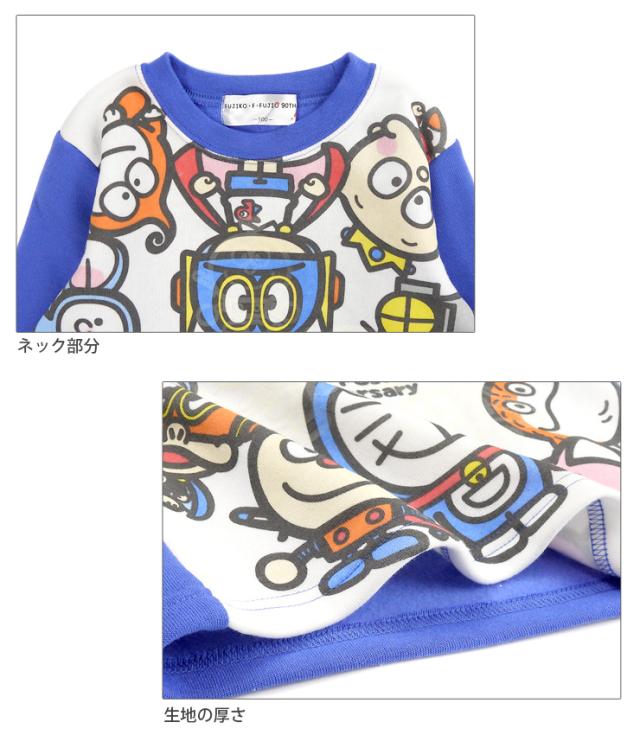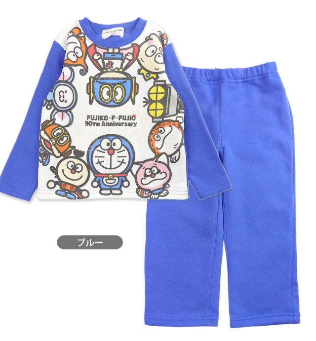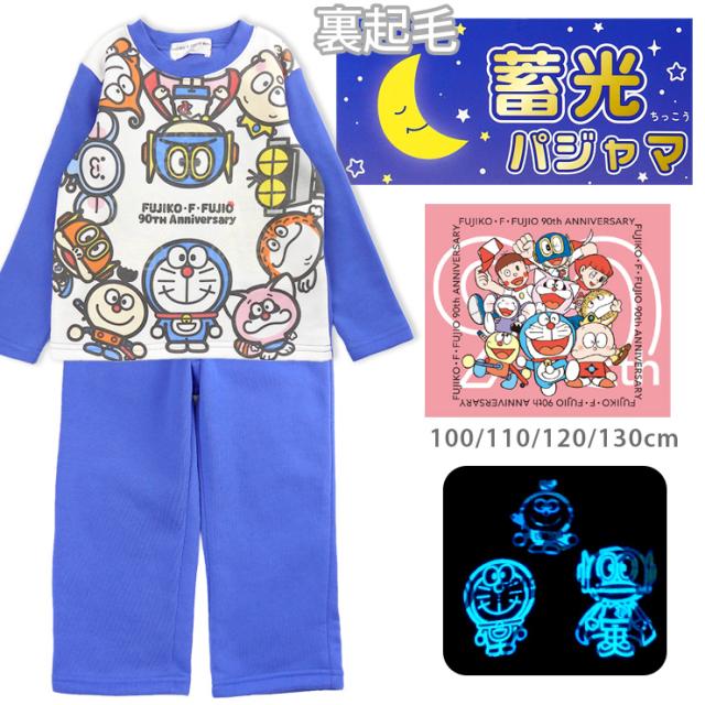 【送料無料】藤子・F・不二雄 生誕90周年記念 裏起毛 蓄光 パジャマ 上下セットアップ キッズ ジュニア 秋冬春 100 110 120 130 ブルー 長袖 長ズボン ルームウエア 部屋着 スウェット スエットプルオーバー 丸首 ロングパンツ 子供 男の子 アニメ 青 No.9894