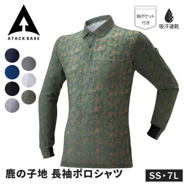 アタックベース ポロシャツ 長袖 メンズ ブランド 胸ポケット おしゃれ ゴルフ SS~5L 7L 大きいサイズ ポリエステル 綿 作業着 作業服 レディース ネイビー グレー ブルー ホワイト 白 ブラック 黒 ペイントカーキ ペイントグレー 13115