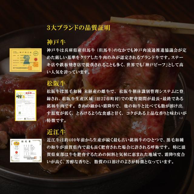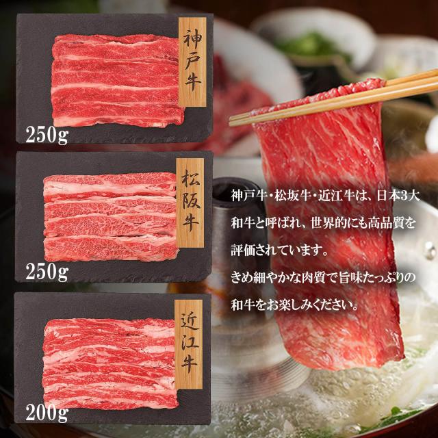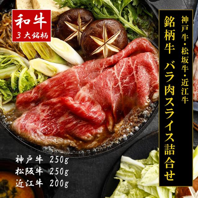 【送料無料】【和牛3大ブランド】神戸牛・松坂牛・近江牛バラ肉スライス(神戸牛250g・松阪牛250g・近江牛200g)【プレーリードッグファーム】