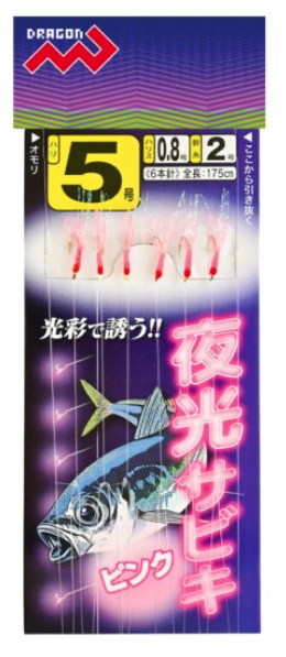 マルシン漁具 夜光サビキ ピンク 針5号 ハリス0.8号 幹糸2号 / サビキ 仕掛け メール便可
