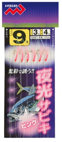 マルシン漁具 夜光サビキ ピンク 針9号 ハリス3号 幹糸4号 / サビキ 仕掛け メール便可