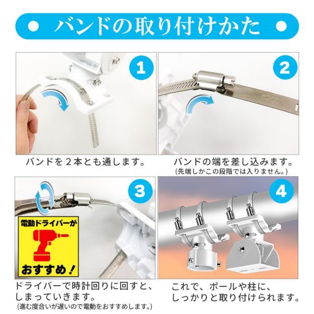 防犯カメラ ポール 4個セット 取付金具 ブラケット ドーム型 CCTV型 選べる ステンレスバンド 高耐久 ハウジング 穴開け不要 監視カメラ ダミー センサーライト ブラケット円柱 角柱 屋外 屋内 壁 天井 設置 すぐ使える ネジ付き