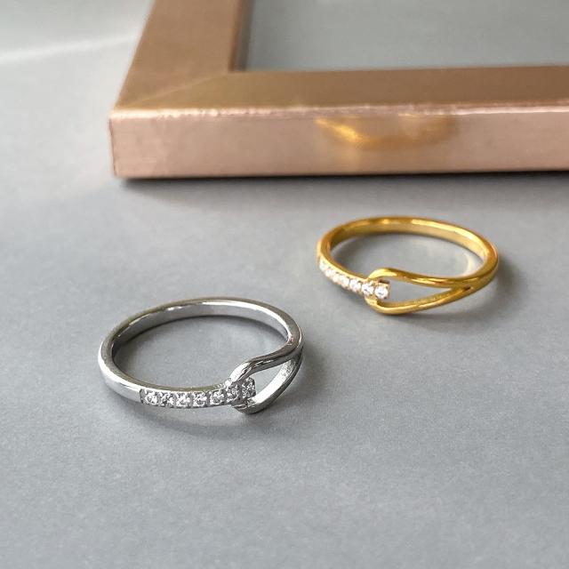 目を惹く手元に導くハーフノットCZリング。