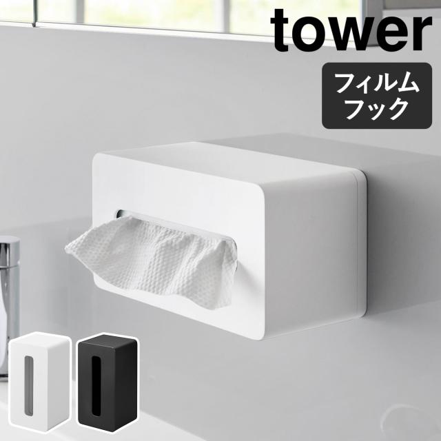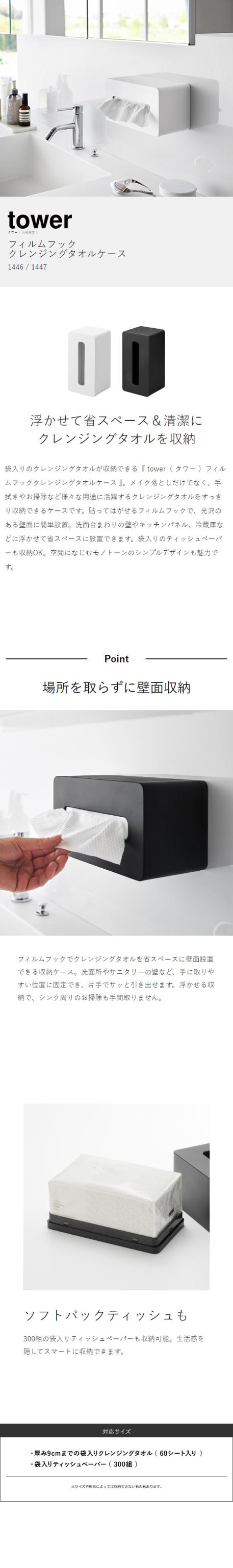 [ フィルムフッククレンジングタオルケース タワー ]山崎実業 tower 収納ケース クレンジングタオル収納 クレンジング 化粧 メイク落とし コスメ スキンケア 美容 化粧落とし 北欧 おしゃれ yamazaki 公式 モノトーン ブラック ホワイト 1446 1447