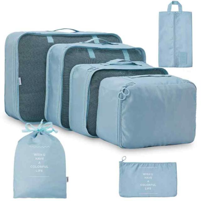 トラベルポーチ 7点セット 防水 アレンジケース 大容量 便利グッズ メッシュ 収納ポーチ バッグ 衣類収納 下着入れ 靴バッグ 小物整理 旅行ポーチ メンズ レディース (ブルー)