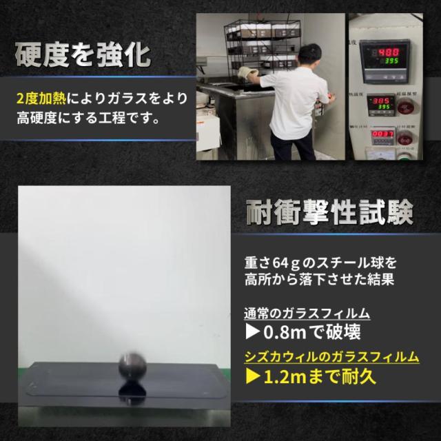 【飛散防止】ハードコーティング技術により外部からの衝撃を吸収し、画面へのダメージを可能な限り抑えます。万が一ガラスが破損した場合も飛び散らず、破片は張り付いたままの状態になるので、スクリーンをきちんと保護しながら破損による怪我を防ぎます。