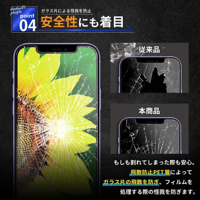 【全面保護・耐衝撃性アップ】9H表面硬度ガラスを採用し、スマートフォンがカバンの中で、鍵などの鋭いものにぶつかっても傷が付きにくく、アイフォンの画面をしっかり保護します!また、飛散防止加工により、万一割れてもガラス破片が飛び散ることなく安心です。
