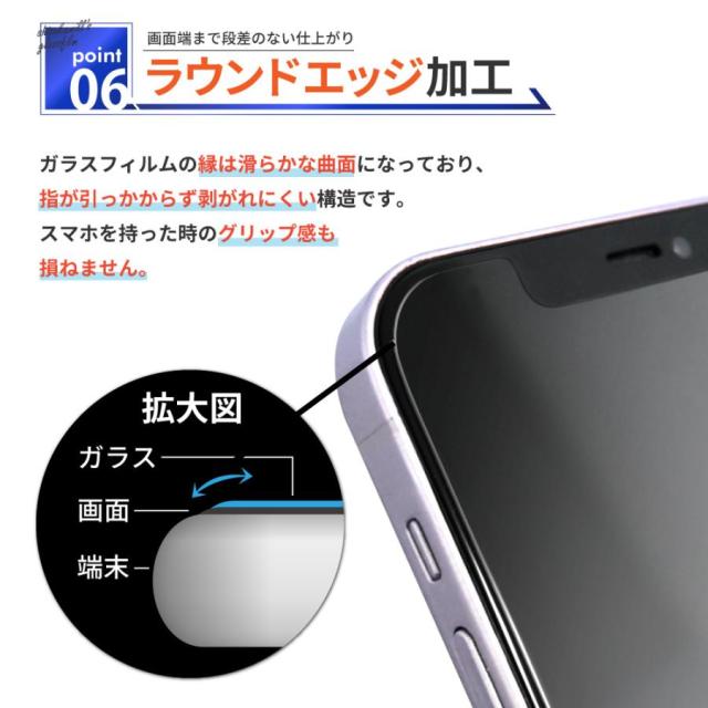 【全面保護&ラウンドエッジ】ノッチまで守る全面保護タイプは、縁までスクリーンを保護した上、iPhone本体との一体感を高め、美しさを引き出せます。さらにラウンドエッジ加工が施され、スライドしても引っかかり感がなく、裸さながらの質感を実現します。